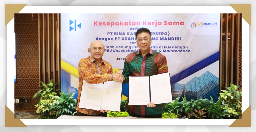 PT Bina Karya (Persero) bersama PT Usaha Gedung Mandiri secara resmi menandatangani Kesepakatan Kerja Sama strategis dalam pengelolaan gedung perkantoran di Ibu Kota Nusantara (IKN). Penandatanganan ini dilaksanakan pada 10 Oktober 2025 di Wisma Mandiri 1, Jakarta, dan menjadi momentum penting bagi kedua perusahaan dalam memperkuat sinergi sektor infrastruktur dan pengelolaan properti nasional.